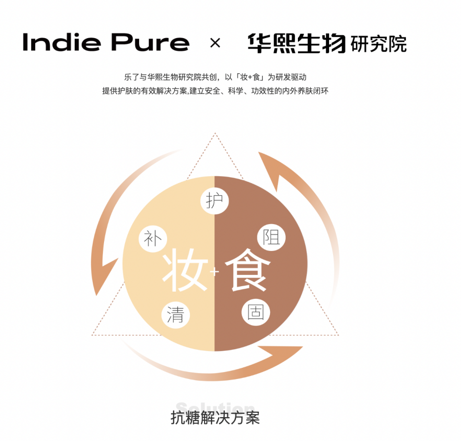 “妆食同研”是“妆食同源”的升维。国内首个打出“妆食同研”的品牌“乐了”(Indie Pure),其创始人Kris称,“研”与“源”一字之差,内涵却不同。“妆食同研”不刻意追求妆与食源自同一种物质,而是以用户同一需求出发,聚焦在同一种功效上,去研发出最能解决用户痛点的产品组合。