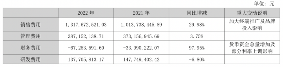 在产品研发上,传统品牌受限于研发资金和技术壁垒,很难与主流美妆品牌形成强势的竞争区隔。比如,2022年东阿阿胶的研发费用为1.4亿元,同比下降6.8%,销售费用却高达13亿元,同比增长29.98%。