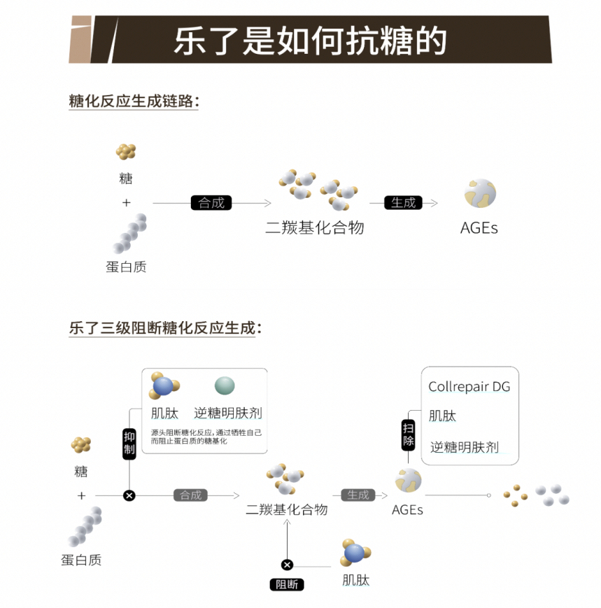 另外,可以选择聚焦某个更具功能性的需求,用“制药逻辑”进行产品研发,增强与国内顶级科研实验室、专业药企、成熟企业的配方师团队合作。如“乐了”找到的是“抗糖”,并且在官网、品牌旗舰店、产品介绍中不断强调抗糖的重要性。