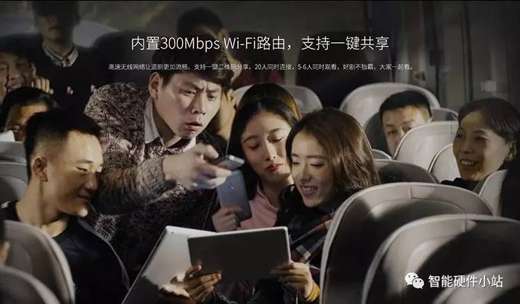 这款产品自带32G固态存储空间,能储存数部电视剧或十余部高清电影。它还集成了容量为10000mAh的移动电源,且有QC2.0快充技术,不但可以给自身供电,还可为其他电子设备补充电量。最重要的是,这款产品支持扫码共享,允许5至6人同时在线观看,使你可以把快乐恣意分享给同行的人。