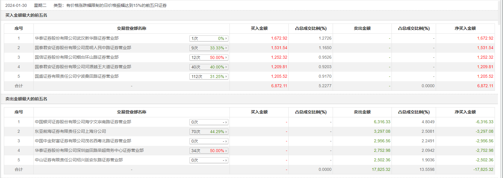 具体来看,知名游资现身龙虎榜,宁波桑田路(国盛证券有限责任公司宁波桑田路证券营业部)净买入1205.52万元。此外,中国银河证券海宁文宗南路证券营业部、东亚前海证券上海分公司分别卖出6316.33万元、3297.08万元;华泰证券武汉新华路证券营业部、国泰君安证券昆明人民中路证券营业部分别买入1672.92万元、1531.54万元。