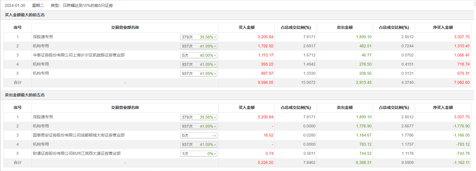 1月30日,联特科技今日跌15.4%,全天换手率达13.15%,振幅达10.68%。龙虎榜数据显示,营业部席位合计净买入2612.76万元。其中,机构买入3676.04万元,卖出3527.59万元,合计净买入148.45万元。此外,深股通专用、国泰君安证券成都顺城大街证券营业部分别卖出1899.10万元、1184.67万元;深股通专用、华泰证券上海长宁区凯旋路证券营业部分别买入5206.84万元、1113.17万元。