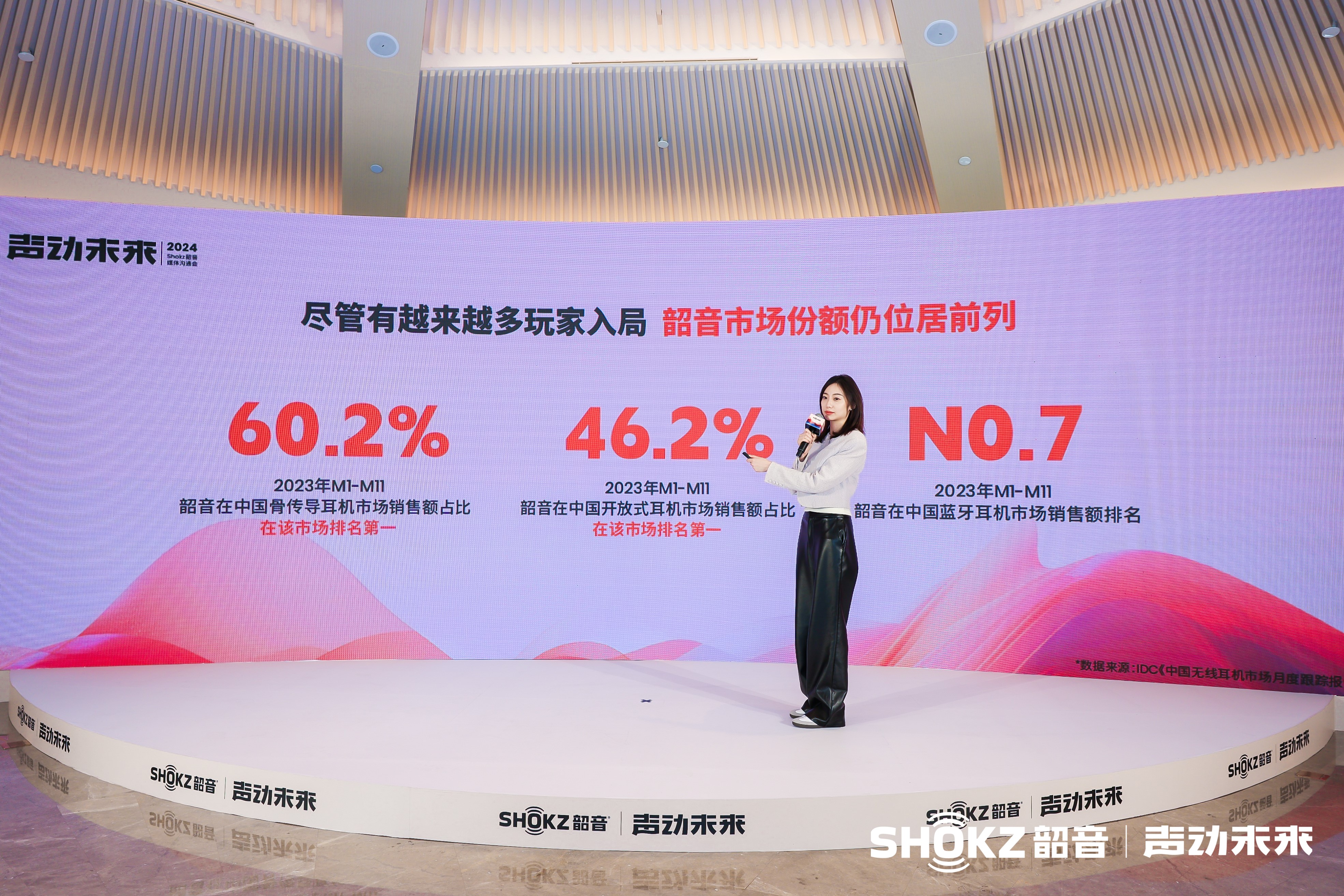 现场公开报表显示,2023年Shokz韶音中国区耳机出货量超过130万支,销售额同比增长40%,全球市场出货量更是超过500万支。截止到目前,Shokz韶音在售区域覆盖超过60个国家,入驻超过30000家线下门店,全球用户超过1500万人。