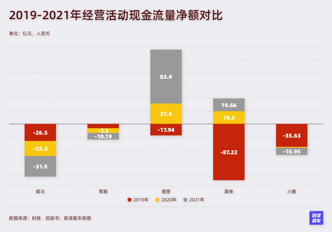 2019-2021三年,威马净流出81.5亿。在主要竞争对手中流失最多。再多的融资也难以招架。
