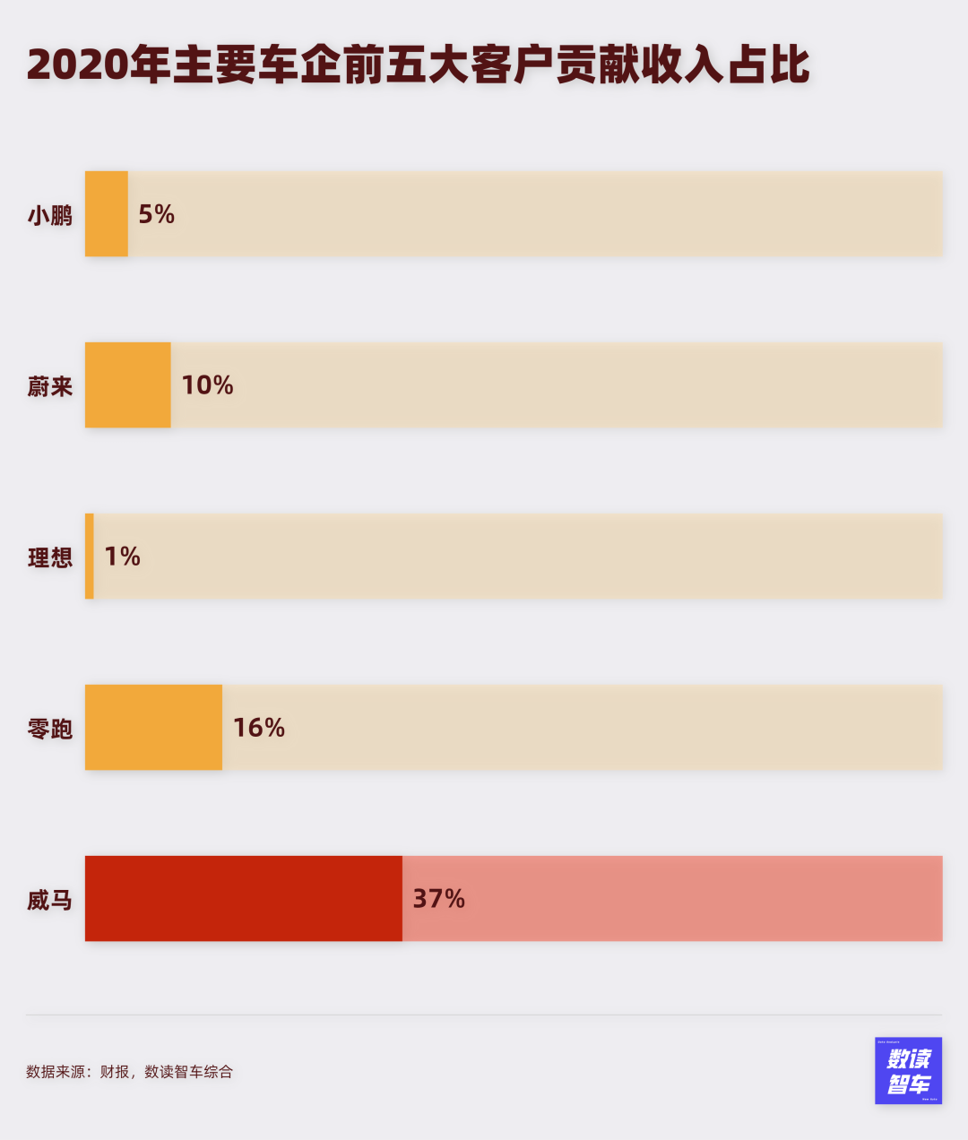 2019年,威马来自五大客户的总收入占比40.6%,其中第一大客户贡献18.2%,比蔚来前五大客户的贡献都多。