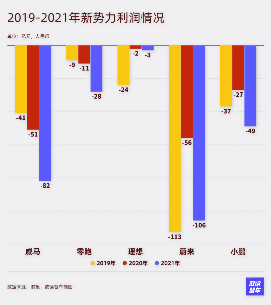 这是小鹏G3开启交付的第一个自然年,12728台的成绩与威马几乎持平。不但营收超过了威马,亏损也少了4亿多。