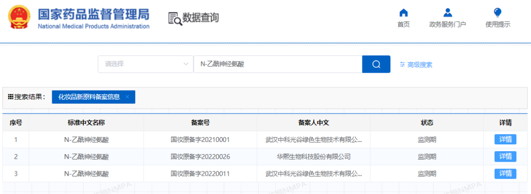 也就是说已经完成备案的化妆品新原料,仅代表该原料已完成备案资料的提交,符合形式要求,公开已完成备案的化妆品新原料相关信息,也不代表认可该新原料的安全性与功能性。等新原料成功度过3年的安全监测期,并纳入已使用化妆品原料目录,其功效性和安全性才算真正得到认可。而第一款新原料备案日期为2021年6月25日,距离3年监测期也还有5个月的时间。
