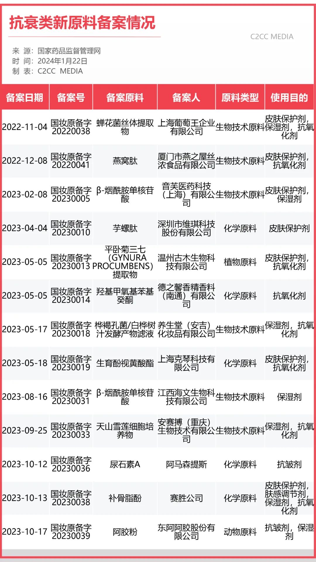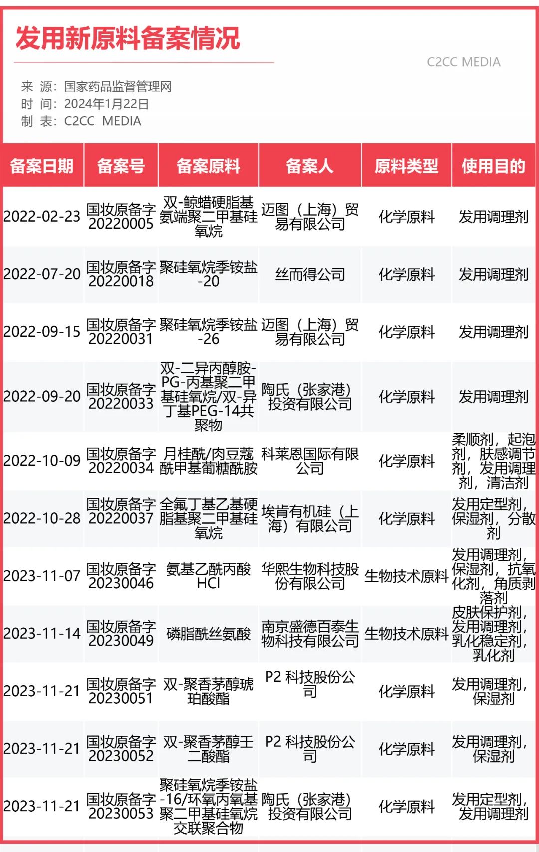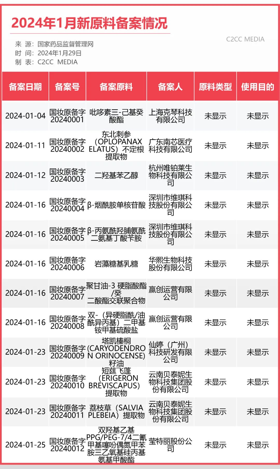 2024开年不到一个月,新原料备案即呈现出爆发式增长趋势,在原料研发创新方面也有亮眼的表现,这为中国美妆产业新一年的发展开了个好头,也将助力中国化妆品进入高质量成长新阶段。