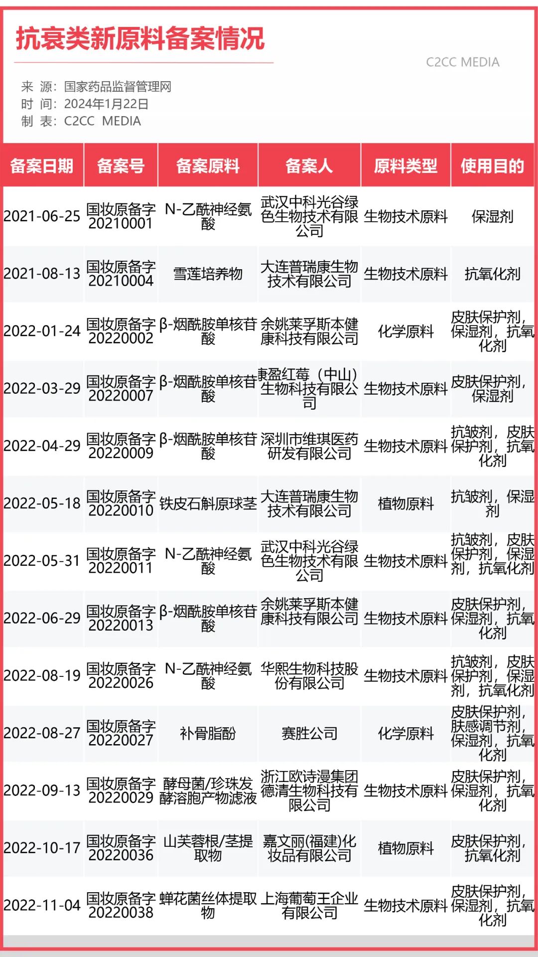 这两年,美妆企业在原料上开启了新一轮的高端局竞争,珀莱雅、丸美、贝泰妮、自然堂等企业均备案了首款新原料。