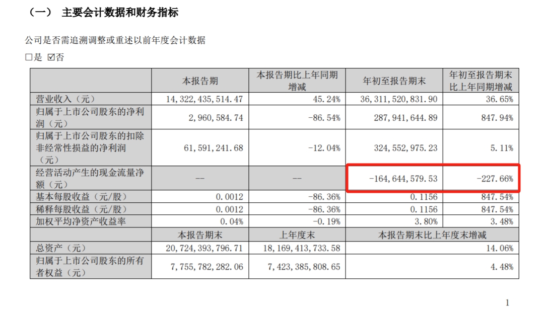 虽然全年净利润为正,但根据三季报,蓝色光标去年前三季度归属上市公司股东的净利润为2.88亿元,扣除非经常性损益后的净利润为3.25亿元,经营活动产品产生的现金流量净额为-1.65亿元,由此引发了市场的讨论。