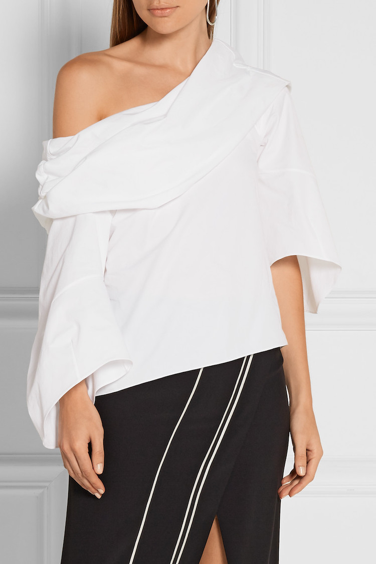 不对称上衣作为新一季的流行单品将取代上一季各大高街品牌都已经出了千百款的一字肩上衣。简单点来说,现在露一个肩膀可能比去年两个肩膀齐露显得更为时髦。单肩的上衣或者衬衫一定是这一季的Must-have,不过似乎也有不少的教你拿着现有衬衫DIY一件不对称上衣的网络教学视频可以尝试拿着现有衬衫单品自己动手做一件。