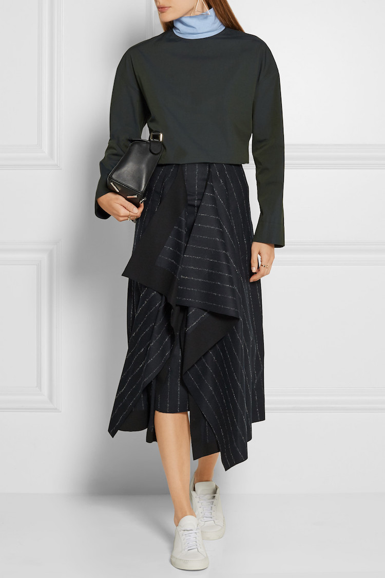 不对称元素单品势必随着它在春夏秀场上高频次出现而持续升温。从3.1 Phillip Lim 2017春季成衣的不对称挖剪,到JW Anderson和Ports 1961春夏的不对称上衣与不对称下摆裙都是秀场上的亮点。还有Jacquemus从2016春夏秀场开始就将不对称元素搬上秀场到2017春夏秀场更是延续了这一不对称风潮。甚至在一些品牌2017早秋系列中都可以看到不对称元素的身影。
