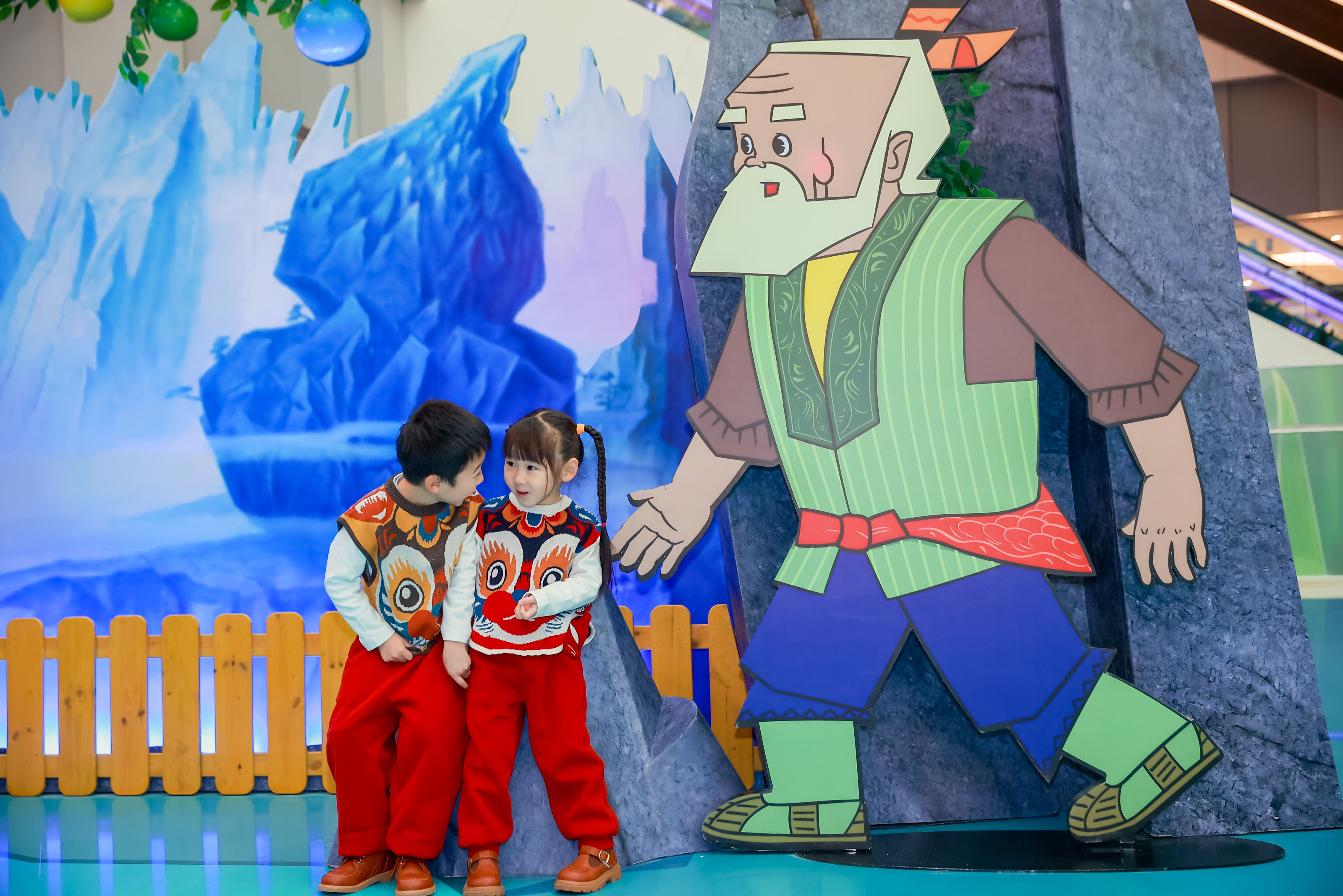 对想要留驻新春回忆的家庭,无论是“大闹天宫”区域仙气满满的灵霄殿、直冲云霄的如意金箍棒,还是“哪吒闹海”区域的金龙戏珠、神龙摆尾,亦或是“葫芦兄弟”区域的巨型葫芦、七色山、玉如意等场景,都可以随心拍出各种创意时刻,定格龙气满满的新春大片。