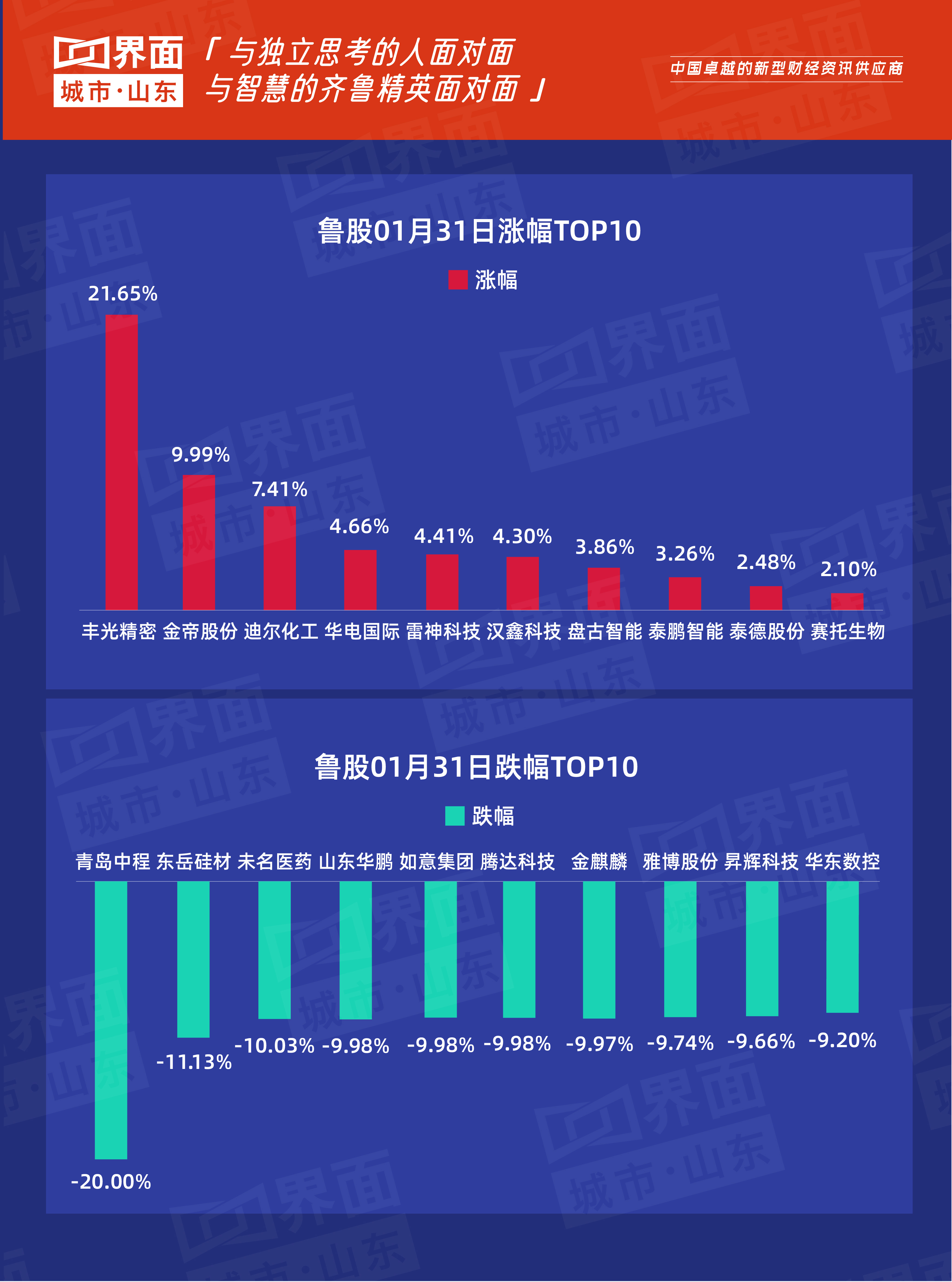 1月31日,山东33只个股上涨,270只个股下跌。