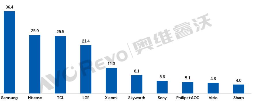 其三:海信和TCL“内部第二”之争也会更加激烈和胶着。从TOP5具体销量看,海信2590万台和TCL的2550万台,这两者只有40万台的差距。对于2000万台以上的规模总量,40万台的差距并不明确。这也预示,海信和TCL“第二之争”将变得更为“缠绵”。