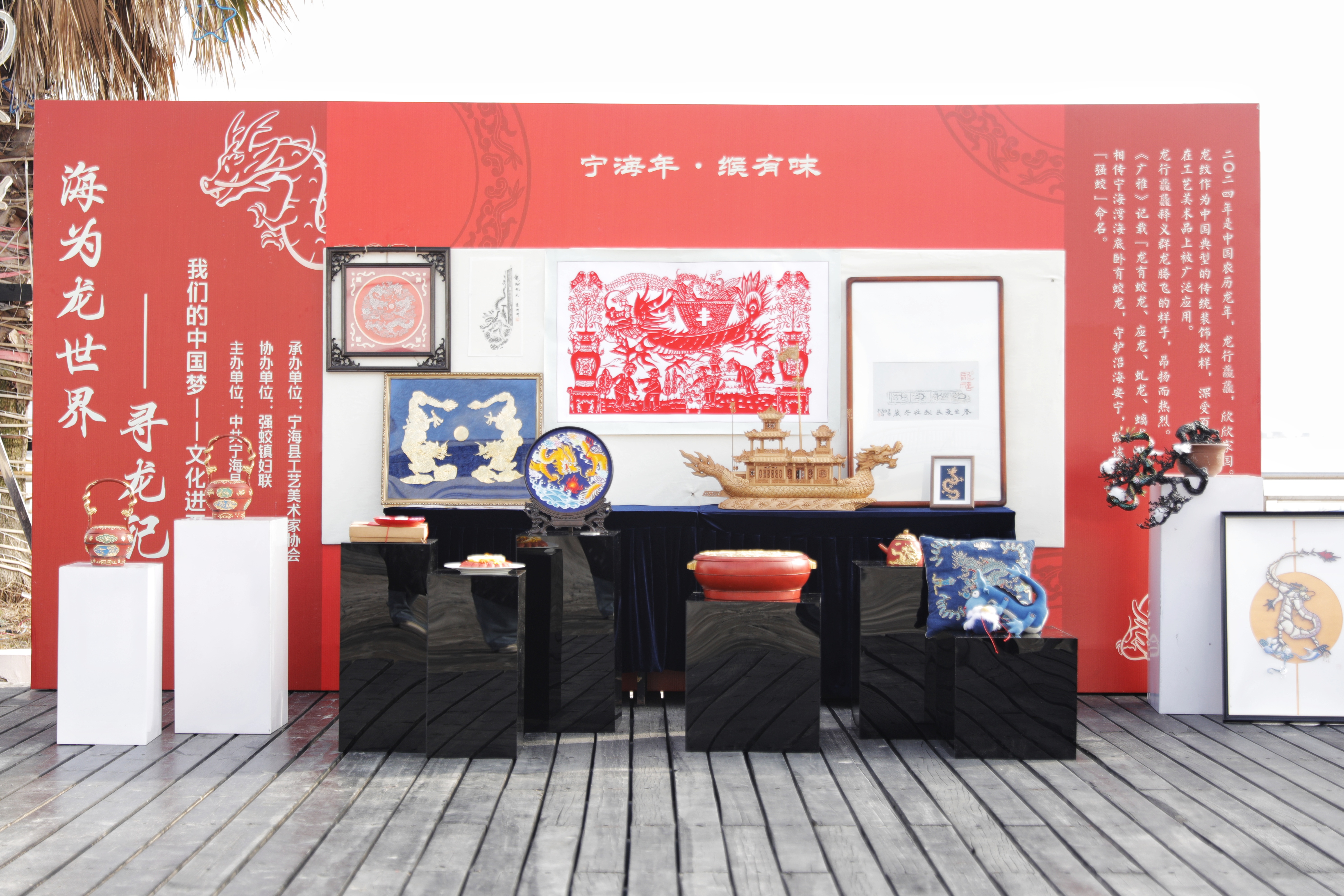 吉祥喜庆的木雕龙船、光彩夺目的泥金彩漆、精美华丽的女红刺绣……1月31日下午,“宁海湾寻龙记”庆龙年活动在宁波宁海县强蛟镇滨海风情街启动,由该县非遗传承人精心创作的24款龙年主题生肖手作一一“亮相”,吸引众多市民游客前来“讨龙彩”。