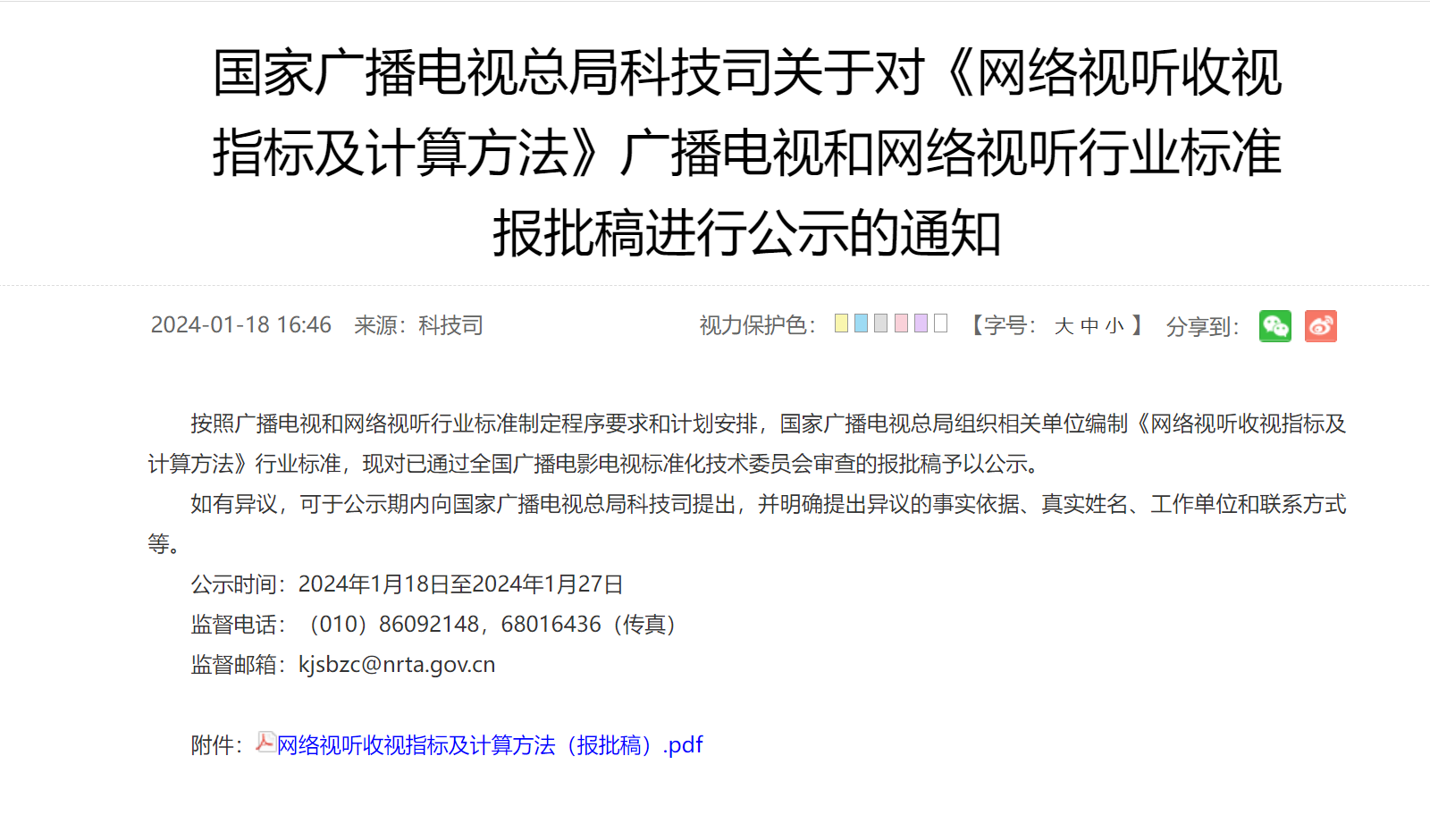 现在,这种情况有望得到改善。1月18日,广电总局在官网刊载了“国家广播电视总局科技司关于对《网络视听收视指标及计算方法》(以下简称“方法”)广播电视和网络视听行业标准报批稿进行公示的通知”(以下简称“通知”)。