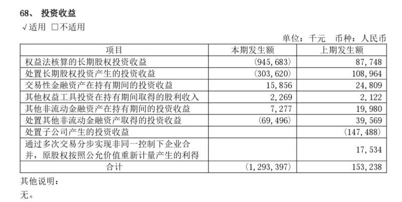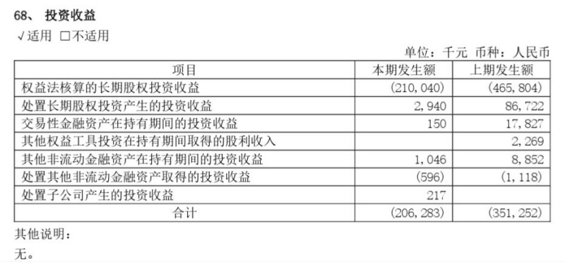 进入2023年以后,三六零在半年报、三季报披露的投资收益亏损额均比较大。2023年半年报显示,上半年的投资收益为-2.06亿元,其中权益法核算的长期股权投资收益(即合联营企业投资收益)就达到2.10亿元。