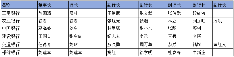 值得一提的是,在六大国有银行行长(包含正,副)中,中国银行、建设银行、交通银行皆有3位“70后”行长。