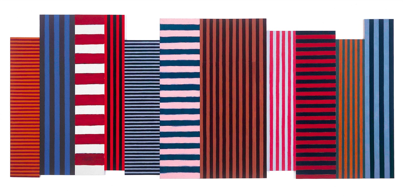 而在他近期创作的“路线”系列(Landline Series)中,斯库利第一次放弃了纵向的色块,放弃了对建筑的指涉,也放弃了二元的结构,对于斯库利本人而言,这是一个重要的突破,意味着他开始渐渐脱离了蒙德里安的影响,“他甚至都不再是我喜欢的艺术家,但是,你懂得,那种不喜欢就像是不喜欢自己的祖父”。