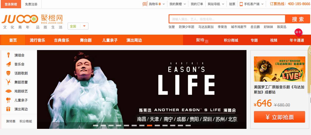 聚橙网成立于2007年,是以演出经纪为主营业务,兼顾票务销售、演出制作、剧场运营的全产业链型演出公司。它在演出领域进行了多点布局。通过旗下小橙堡儿童艺术剧团切入儿童剧市场,打造了国内亲子娱乐演出品牌。同时还向流行音乐市场拓展,孵化了中小型剧场规模的流行音乐文化现场及内容运作子品牌“万有音乐系”。去年9月,聚橙还与澳大利亚歌剧院宣布联合投资制作音乐剧,拓展海外市场。