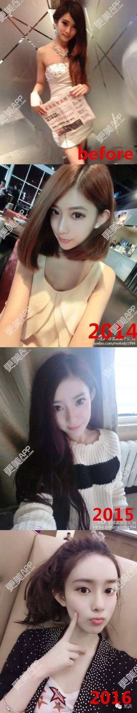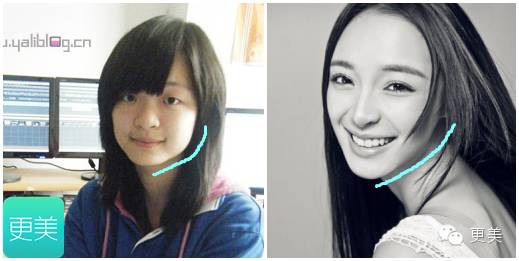以前的胖脸变成了现在的瓜子脸,搭配着现在的尖下巴使的脸部线条更加流畅