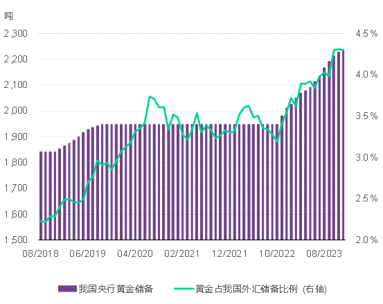 央行购金成为支撑黄金需求的重要因素。世界黄金协会中国区CEO王立新表示,去年全球央行需求达1037吨,冲至历史第二高位,仅略低于2022年央行需求45吨;中国官方黄金储备也呈逐月增加态势,截至2023年底,中国官方黄金储备已达2235吨,占总储备资产的4.3%。