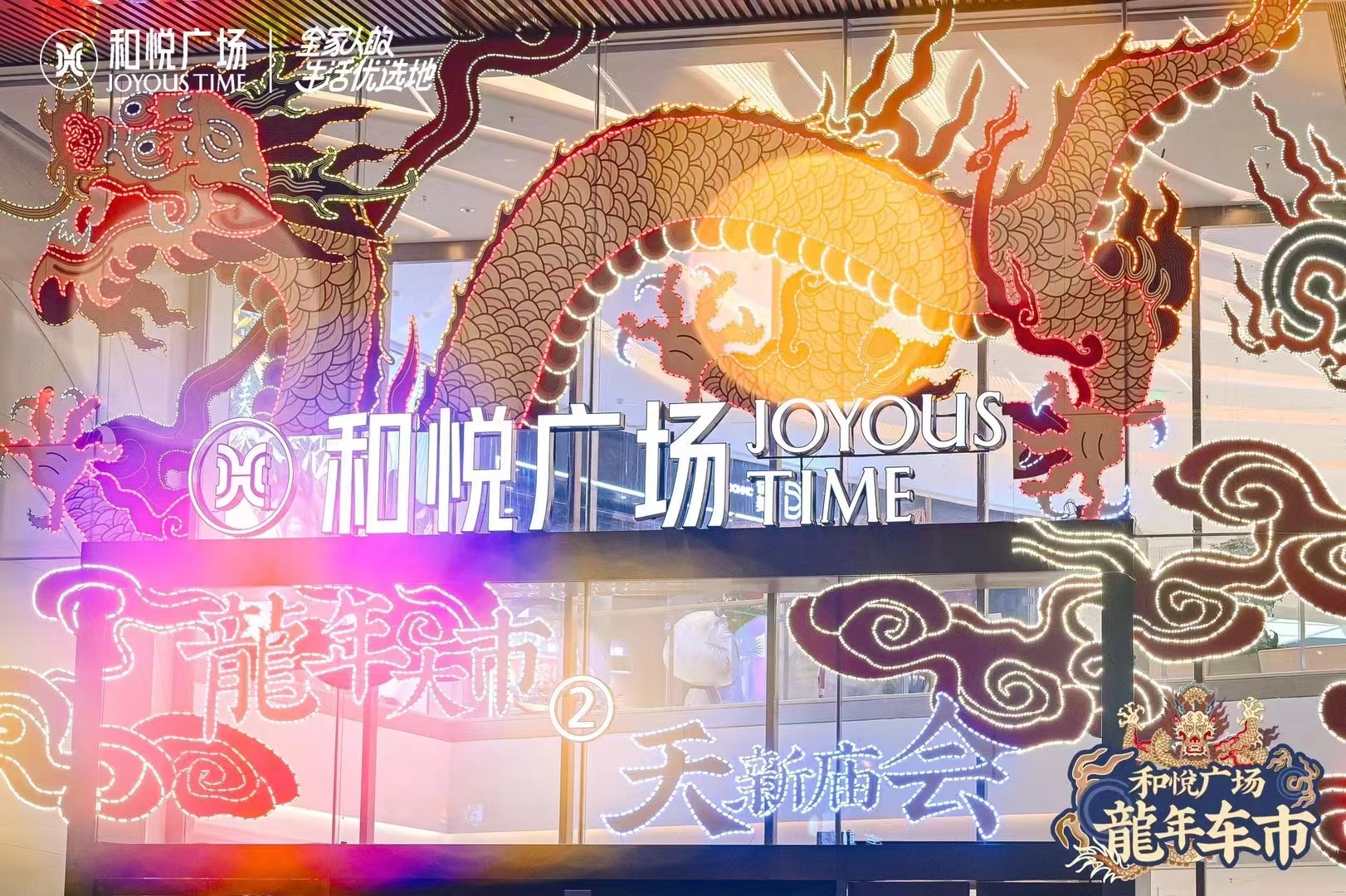调研行首站来到天府和悦广场,在随处可见的“龙”元素装点之下,整座商业综合体呈现出现代化潮流购物方式与传统新春节庆相得益彰。在商场负责人讲解下,一路现场体验各类新春消费新场景,一路尝试解密处于成都市地理中心远端的天府新区商业为何具有如此超高人气。在天府和悦广场,以“天新庙会·龙年大市”为主题创新推出的新春照相馆、新春游园会、新派年货市集系列活动,国潮、民俗、古风等元素一站式聚集,各类主打互动式体验的新型消费频频“吸睛”。