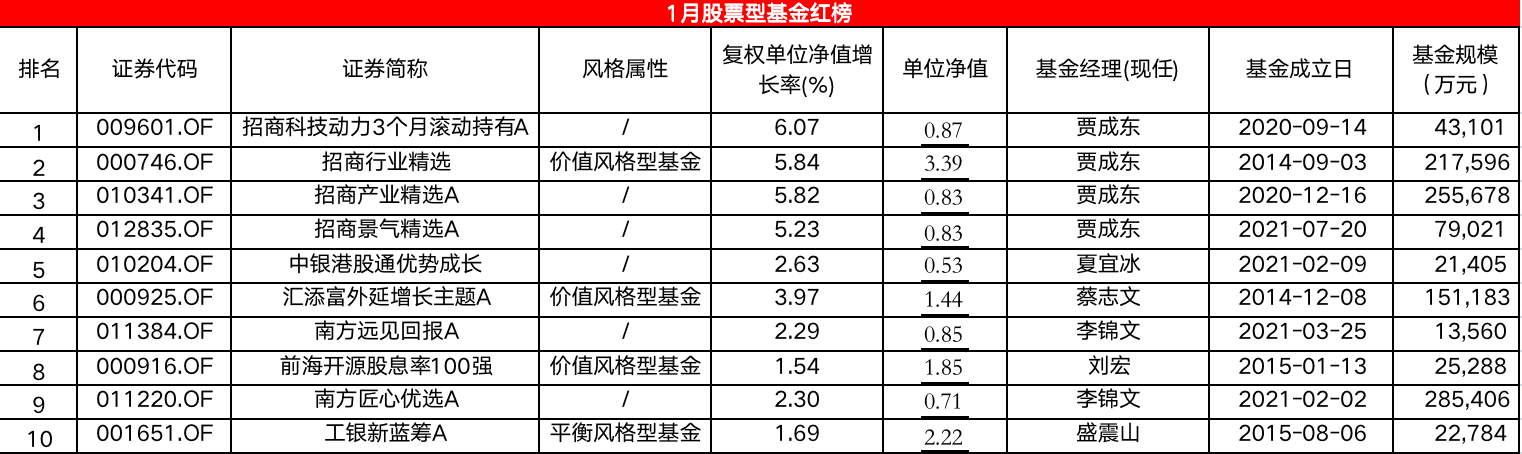 界面新闻综合收益率、波动率、择时与选股等维度对普通股票型基金进行评估,同时对上榜基金进一步筛选,剔除资产规模合计低于五千万,以及成立时间不超过1个月的基金,并排除非投资收益原因造成的净值上涨,整理1月红黑榜。