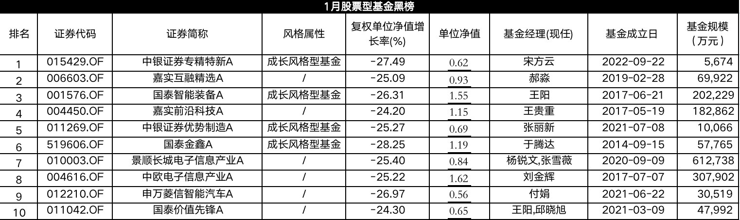TMT板块在1月变为重灾区,覆巢之下无完卵,黑榜上多只为相关主题基金。