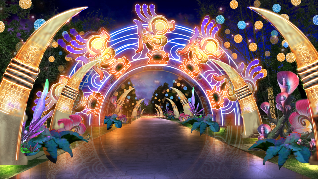 太阳节期间,金沙遗址博物馆的彩灯光影艺术展也将特设“福龙贺春”与“龙腾盛世”两大组团。高达15米的“鱼跃龙门”灯组盘踞遗迹馆门口迎接八方来客,以“龙凤呈祥”“龙宝贺岁”等大型灯组打造长约200米的花灯长廊,带来专属于龙年新春的吉祥祝福。