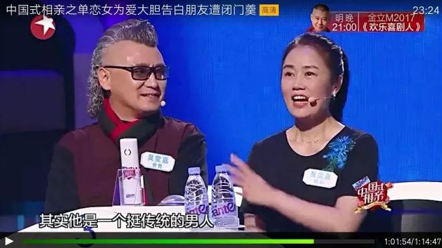 《中国式相亲》里“金姐摇身变红娘,带上爸妈找对象”,则是长辈们组团上阵帮儿女相亲,完全是上海人民公园“相亲角”的即视感。这个节目除了两性话题的探讨还延伸到了对于代际关系的反思。