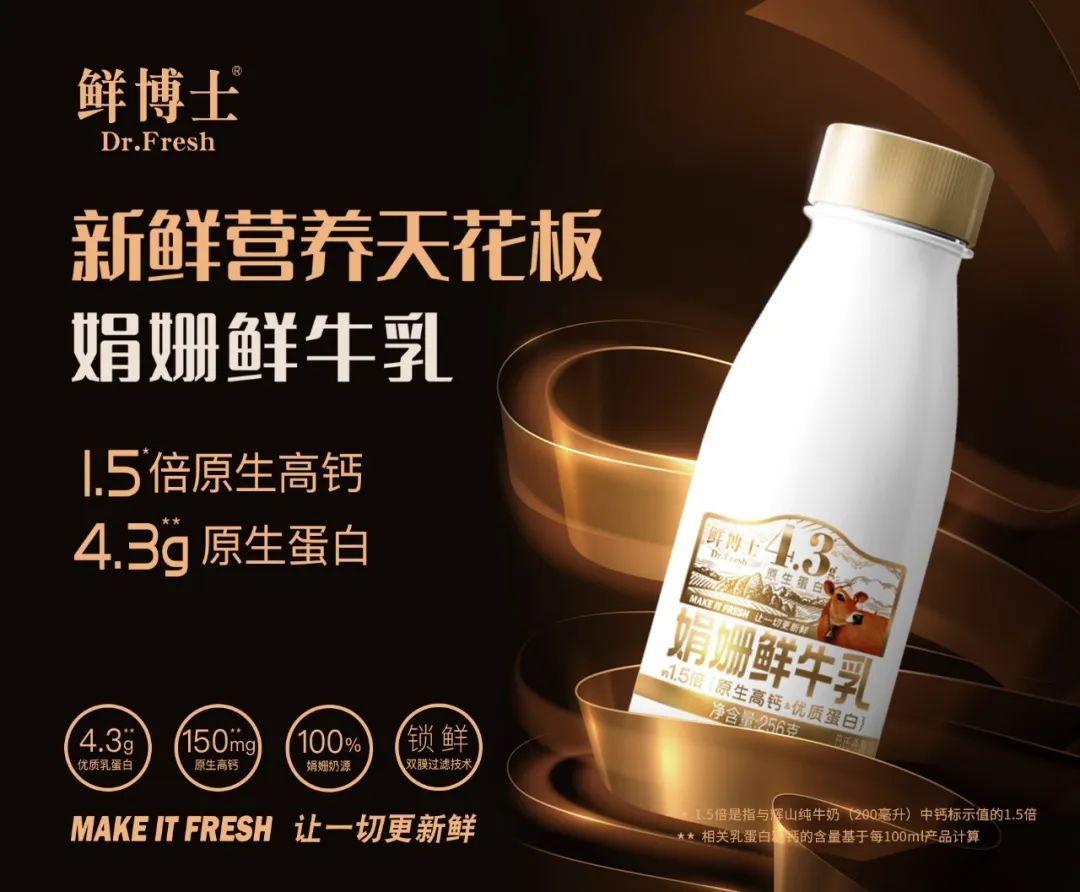 早在2006年,越秀辉山便推出了鲜奶品牌 “鲜博士”,主张“尊重自然,好奶源无需过度加工”的产品理念,致力于满足消费者“让一切更新鲜”的生活愿景。