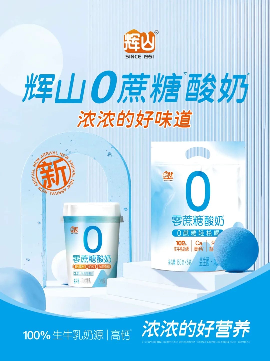 然而,在减糖、控糖消费需求与相关政策推动之下,控糖酸奶品类却保持着增长。敏锐洞察到这一趋势后,越秀辉山在2023年瞄准低温酸奶赛道,推出零蔗糖酸奶。