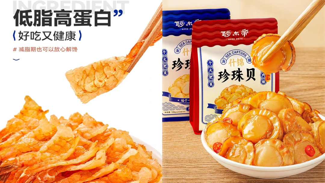 成立于2008年的阿尔帝,是辽宁仁达旗下的食品品牌。他们推出了适合健身期、减脂期食用,好吃不贵的海鲜零食,匹配多个生活场景,如开袋即食,或搭配健身餐等。