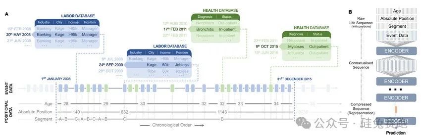 这一机器学习模型的基本操作是将生活中发生的种种事件编码为向量表示,再从这些事件中学习固定模式,继而根据这些序列模式对未来做出预测,包括死亡率、未来收入、教育成就、健康状况和性格变化等多种未来事件的预测。