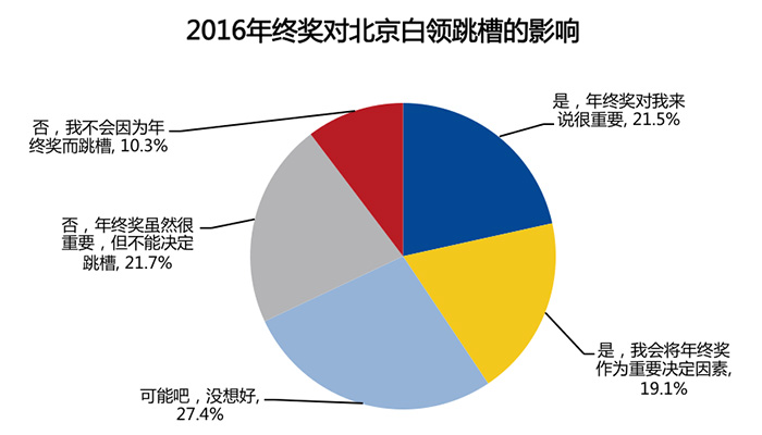 关于年终奖这笔钱怎么花,我们可能已经计划了一年。所以如果这个期盼落空了,打击到的不仅仅是员工积极性,恐怕还有忠诚度。当受访者被问及是否会因为年终奖发放情况而选择跳槽时,40.6%的北京白领明确表示会,但也有32%的白领表示跳槽与否不受年终奖的影响,此外有27.4%的白领表示不确定。