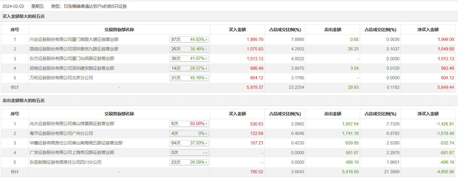 山西路桥2月2日涨停,全天换手率达8.43%,振幅达7.06%。龙虎榜数据显示,营业部席位合计净买入1193.46万元。其中,兴业证券厦门湖里大道证券营业部、国信证券深圳泰然九路证券营业部分别买入1999.70万元、1075.93万元;光大证券佛山绿景路证券营业部、粤开证券广州分公司分别卖出1957.54万元、1741.16万元。
