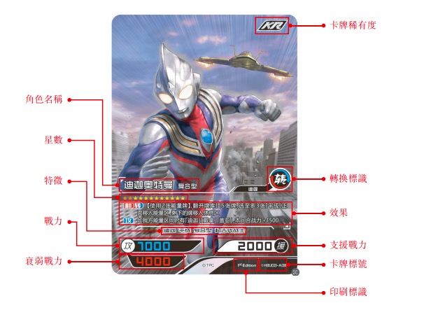 以卡游最知名的奥特曼卡牌为例,每张卡片上都会印有一个奥特曼系列IP中的形象,比如奥特曼或者怪兽等等,并标有各自不同的攻击力等数值。集换式卡牌游戏需要将特定主题的卡牌构成自己的“卡组”,使用不同的技能与对方进行回合制卡牌游戏。