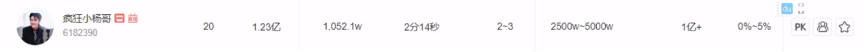 抖音APP数据显示,疯狂小杨哥目前粉丝数量显示为9999万+,已经达到过亿级别。意味着平均每14个中国人,就可能有1个人是疯狂小杨哥的粉丝。而这种强大的影响力也让疯狂小杨哥在2023年直播届混的风生水起,吸金能力惊人。