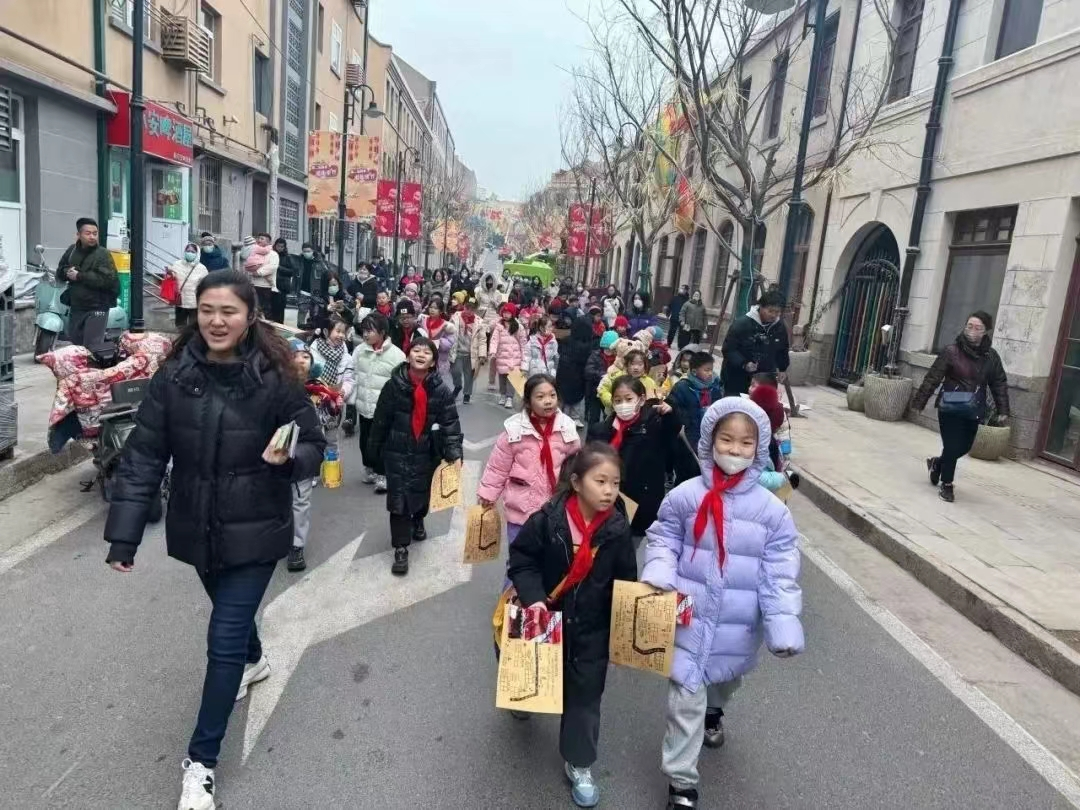 据了解,“百年中山路,嗨游上街里”新春游园会是“优学市南”2024冬季研学活动中的重要组成单元,也是一场面向全体学生和家长的公益活动,市南区7所试点校参与“新春游园会”研学实践,组织“最是星火”——红领巾新春义卖活动,共3000余名师生家长参与其中。
