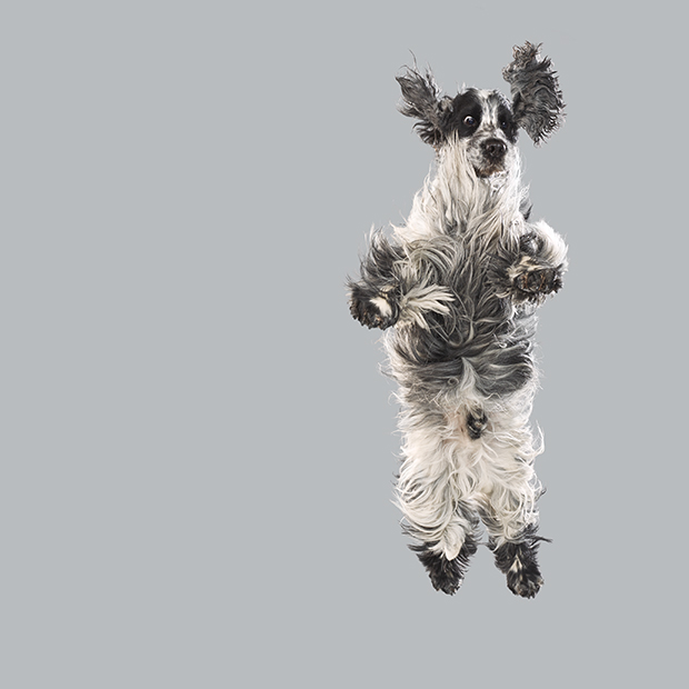 这个系列作品的开端是一个叫Flinn的狗和他的飞碟。Flinn的主人,摄影师Julia Christe萌生了拍摄系列照片,记录像Flinn一样无拘无束的小狗玩耍的样子。之后她开始逗其他数十只狗让它们跳起来,空中小狗系列诞生了。