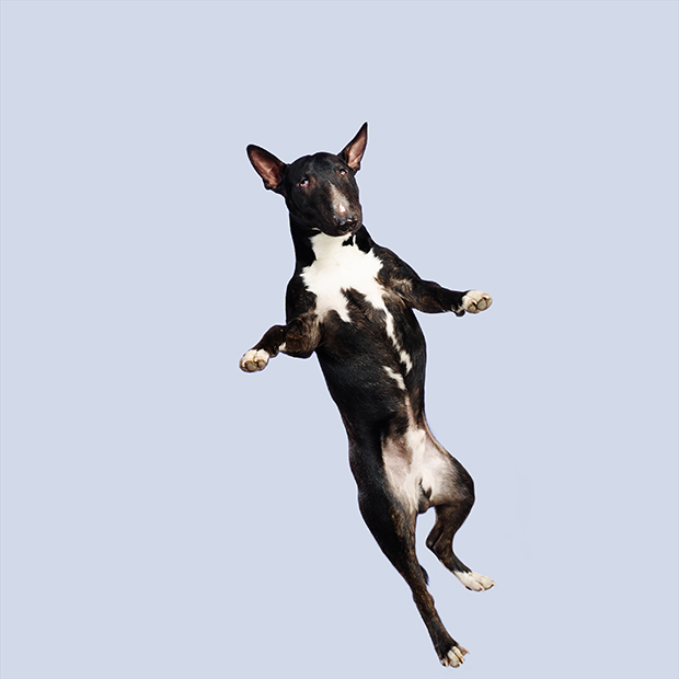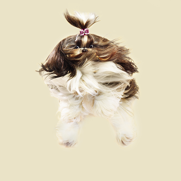 一般而言拍摄的第一张和第二张会被录用。Christe想要在狗狗弄明白发生了什么之后捕获它们迷惑惊奇的表情。跳了几次之后狗狗就能迅速理解这是一个游戏,虽然它们也很高兴,但是已经没有蠢萌的表情了。