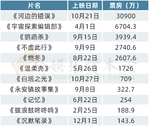 2023年,电影行业整体回暖,文艺片相较之前有了更多声量。年初《宇宙探索编辑部》打开软科幻+文艺片的赛道,年末一部《河边的错误》打破国产文艺片3亿的票房天花板。