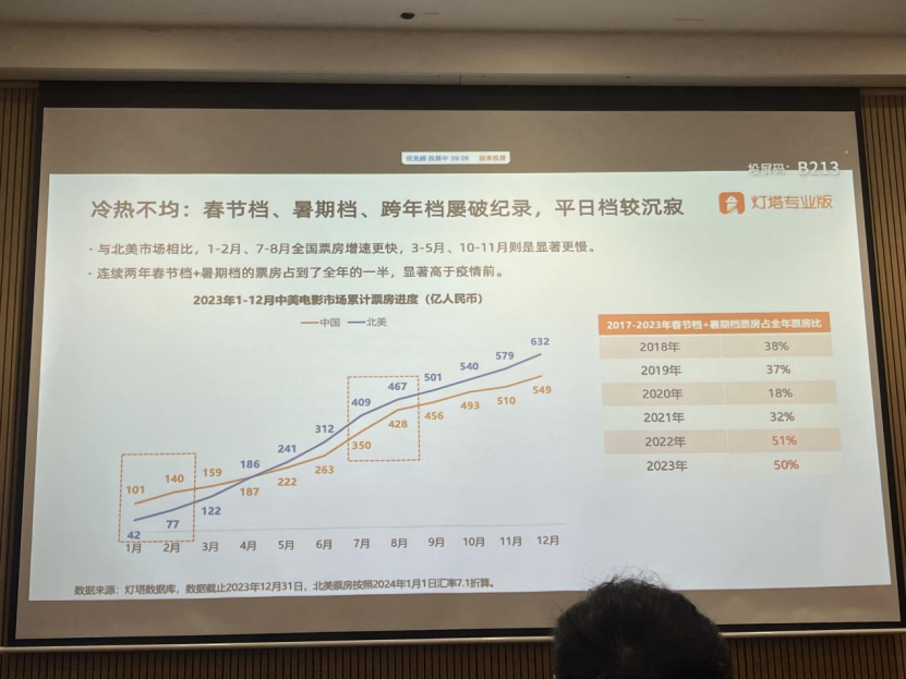 去年,电影市场的档期效应更加集中,春节档+暑期档占到全年票房一半以上。灯塔专业版报告显示,2023年人均观影人次为2.58次/人,其中51%的人一年只看一次电影。另外,从发行角度来说,最基本的原则是不同投资体量的影片匹配不同的档期。而文艺片普遍投资体量小,宣发费用有限,本身就不具备在大热档期竞争的优势。