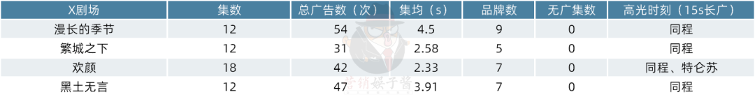 据统计,腾讯X剧场最后一部《黑土无言》,集均广告数量达3.91个,峰值达5个,剧播期并没有出现零广现象。截止今日,杨紫、范丞丞主演的《要久久爱》,有近20个品牌投放广告。