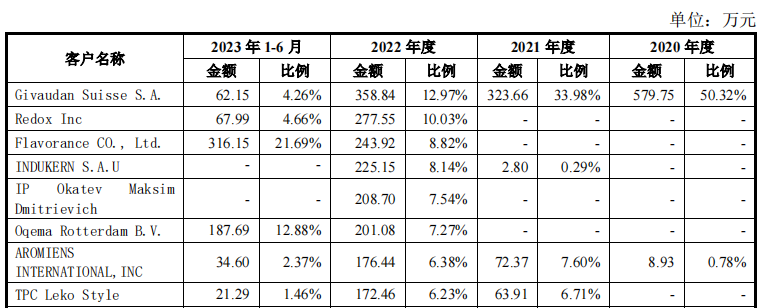具体而言,除食品类企业外,中草香料大部分客户为香料香精贸易商,包括国际香料香精巨头德之馨、奇华顿等。其中,奇华顿也是中草香料境外销售第一大客户。