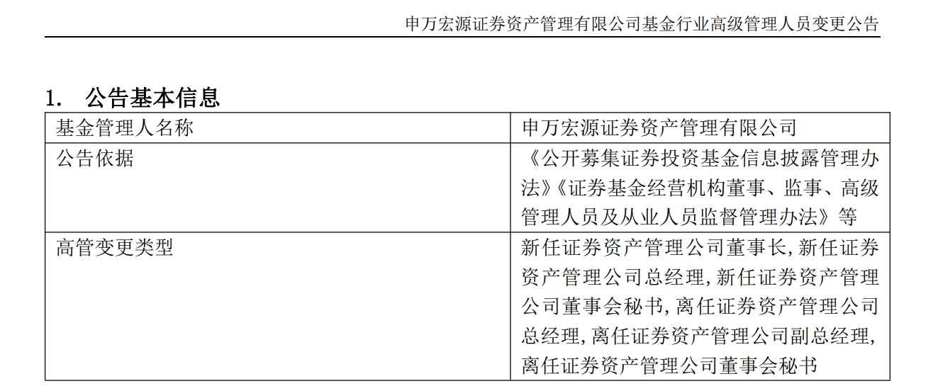 2月2月,申万宏源证券资产管理(下称:申万宏源资管)发布高管变更公告,一次性官宣了董事长、总经理和董事会秘书三个职务。