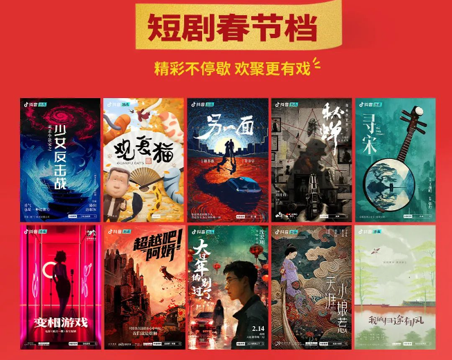 故事的另一侧,抖音、快手接连公布了各自的短剧春节档片单,短剧成为春节内容消费的又一个新选项。