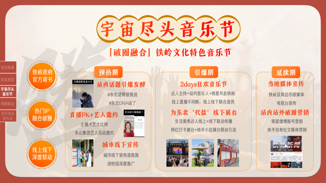 快手不仅准备了《宇宙尽头音乐节》《铁血正少年》《龙年街头音乐会》等一系列特色分明的创意新综,还将与众多明星深度合作,通过短视频+直播的活动形式,特别定制了娱乐晚会、特色栏目、微综艺等内容。